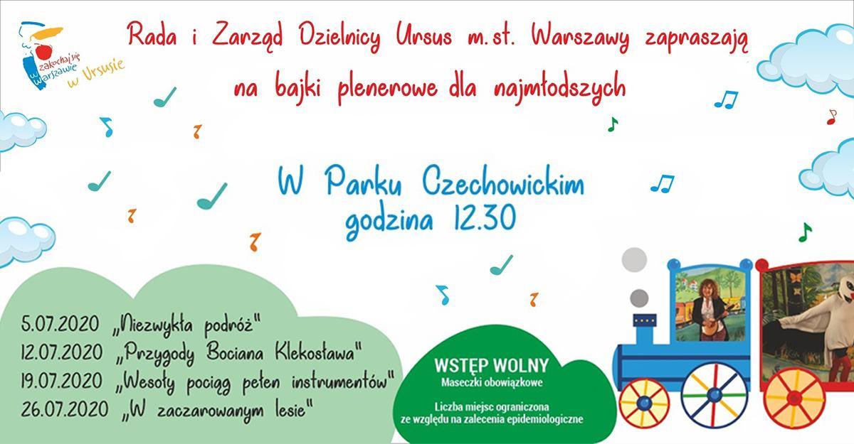 Wszystkie dzieci do wspólnej zabawy podczas bajek plenerowych zapraszają Rada i Zarząd Dzielnicy Ursus m.st. Warszawy.