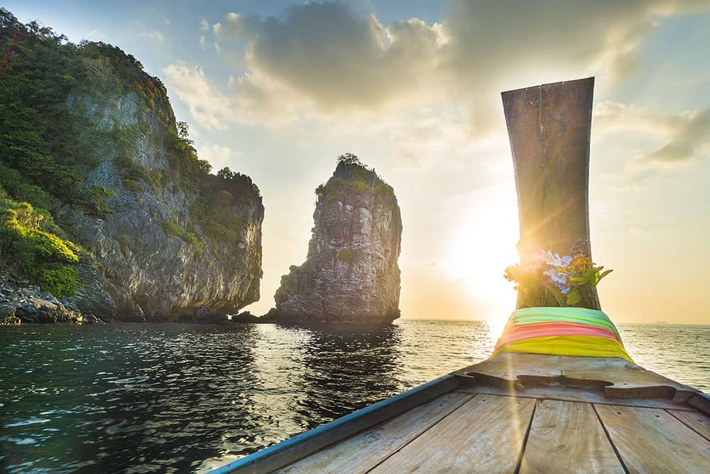 Czas szybko płynie, więc nim się obejrzałam, siedzieliśmy w samolocie do Bangkoku. Dwa szalone dni spędzone w tajskiej stolicy, potem krótki lot na Phuket, jazda taksówką i przeprawa promem. A później już z górki – po prostu wynajętą łodzią prosto na biały piasek przepięknego resortu. Tak w skrócie znaleźliśmy się na wyspie Phi Phi, określanej jako jedno z najpiękniejszych miejsc na świecie… Dodam, że określanej w ten sposób w pełni zasłużenie.