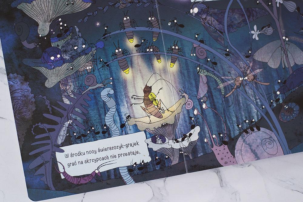 Książka “Co kryje las” to wyszukiwanka wyjątkowa, można powiedzieć, że to propozycja dla wytrawnych wyszukiwaczy. Każda strona kryje w sobie niespodzianki i cuda do odnalezienia. Aby dowiedzieć się, co kryje się w różnych miejscach lasu, konieczne będzie użycie lupy. A raczej – trzech różnych lup! Jak to możliwe? Otóż każdy kolor pozwala odkryć inne, opisane na dole strony tajemnice. I wiecie co? Dorosłych też wciąga!