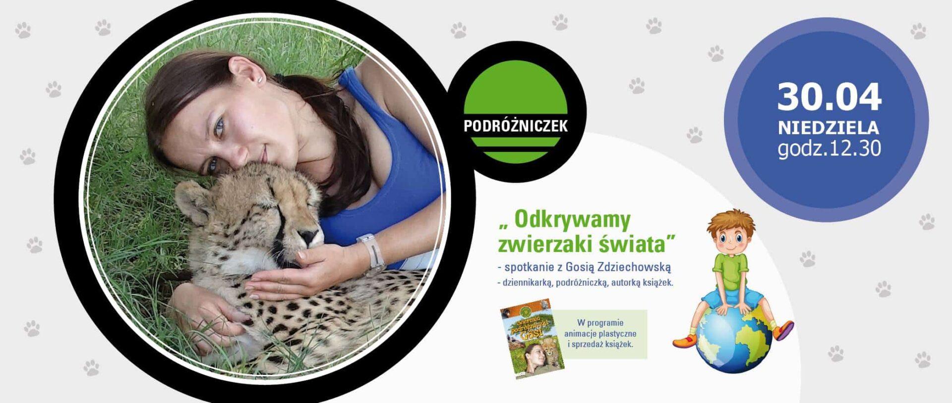 “Serdecznie zapraszamy na kolejne spotkanie z cyklu „Podróżniczek- Akademia Odkrywcy im. T. Halika „Odkrywamy zwierzaki świata” – spotkanie z Gosią Zdziechowską – dziennikarką, podróżniczką i autorką książek. W programie spotkania animacje plastyczne .