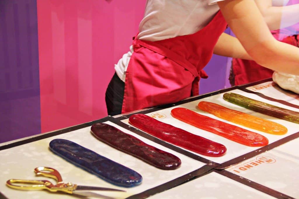 Zapraszamy na pokazy ręcznie wytwarzanych cukierków. O każdej pełnej godzinie będzie można obejrzeć proces powstawania cukierków od momentu wylania gorącego karmelu na stół produkcyjny, po złożenie całego wzoru w cukierku.