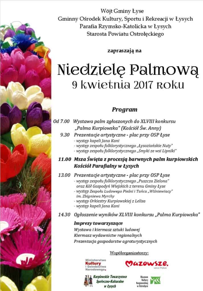 13:00 – 16:00 Warsztaty robienia palm wielkanocnych, podczas których będzie można samodzielnie wykonać własną palmę wielkanocną z przygotowanego przez nas materiału. Nie obowiązują zapisy.
